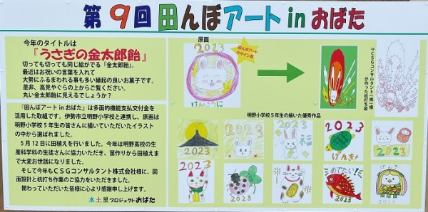 なうさぎの金太郎飴が出現しました。原画は明野小学校5年生の皆さんに描いていた